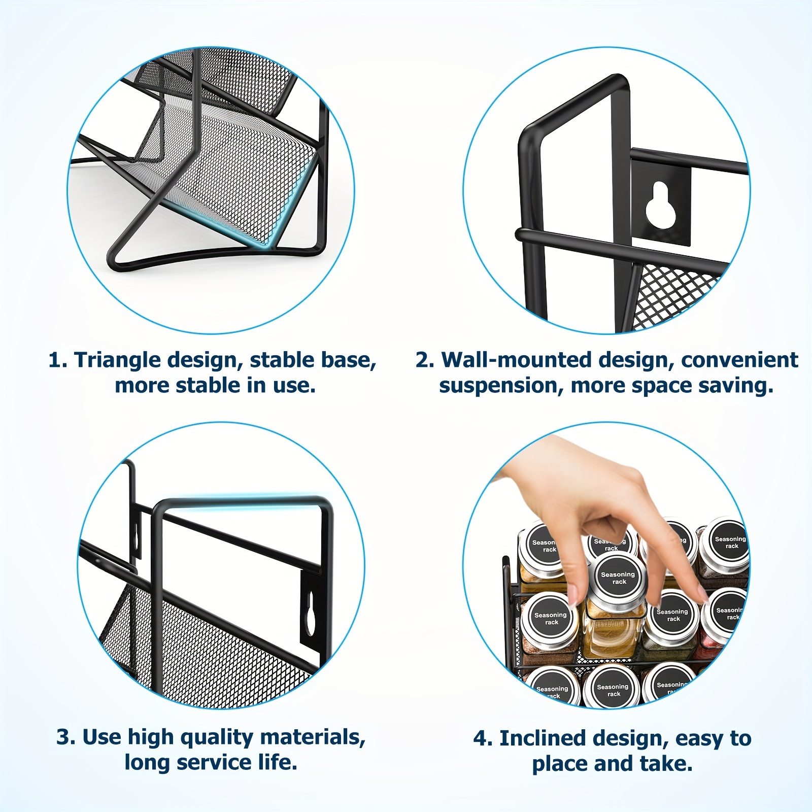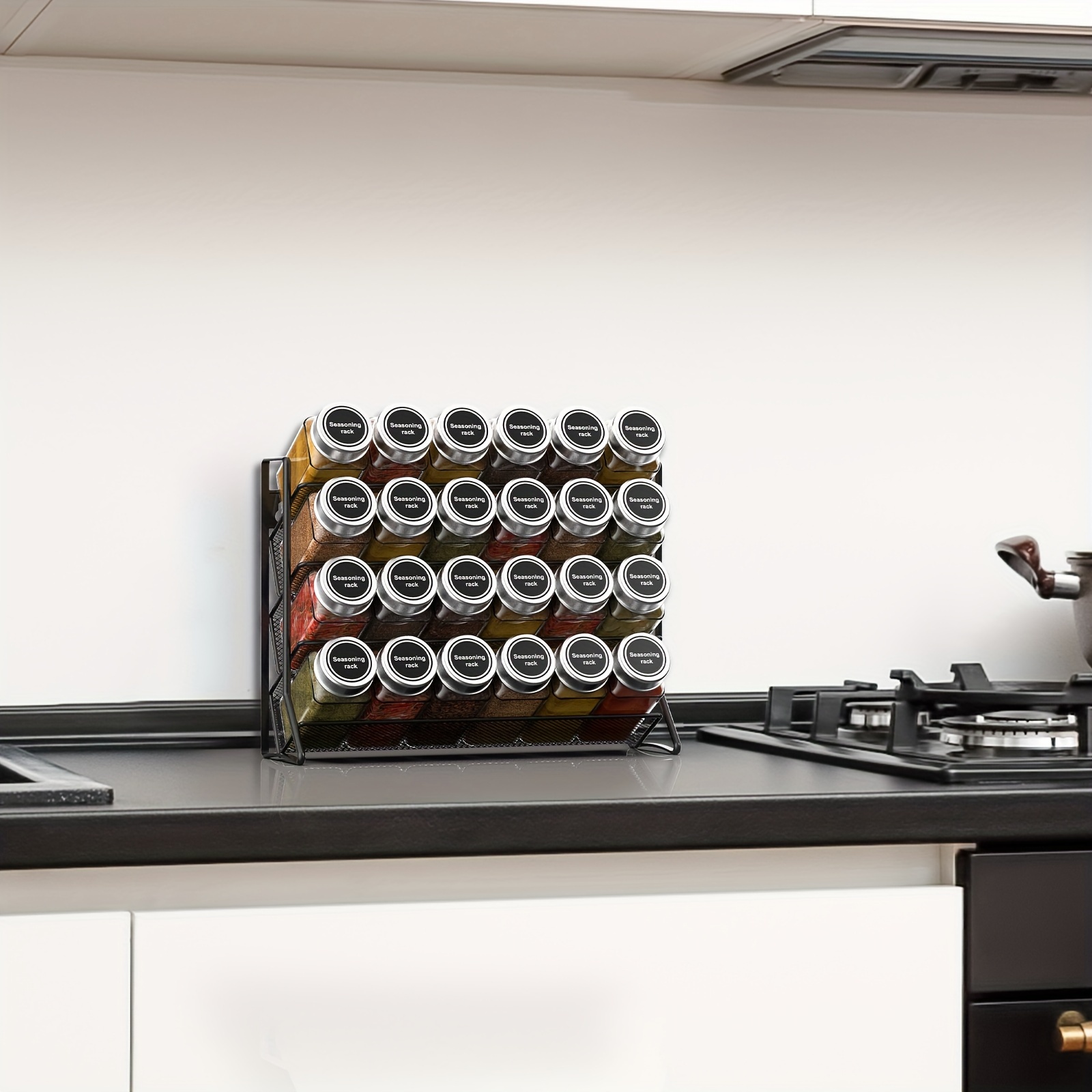4-stöckiges Gewürzregal mit multifunktionalen Gläsern – Zur Aufbewahrung von Gewürzen auf Küchenarbeitsplatten und in Schränken