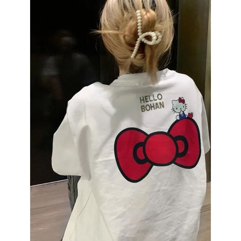 Herbst Winter Damen Hoodies Hello Kitty Merch Bow Print Kleidung Sweatshirt Y2K Übergroßer Pullover aus 100 % Baumwolle Freizeitkleidung